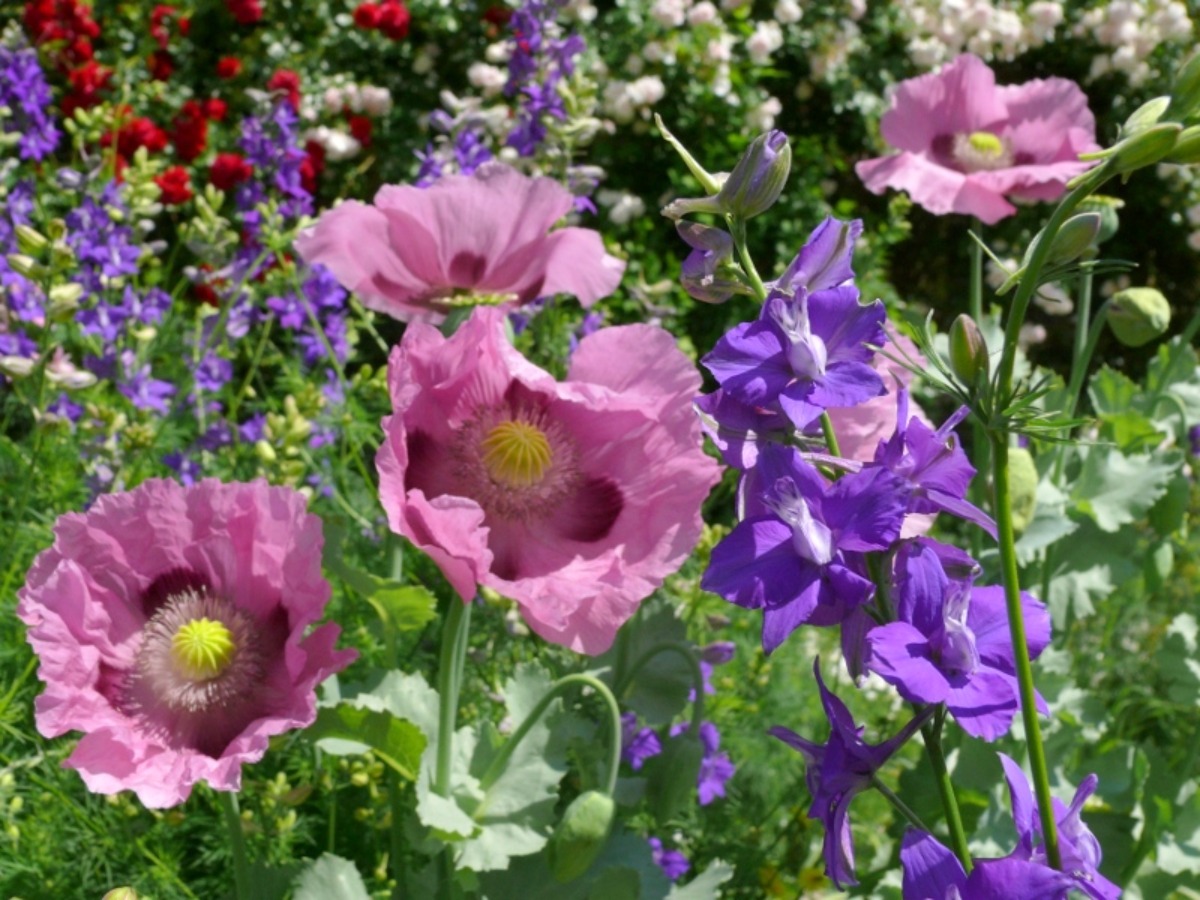 Viele durch besondere Blütenpracht und Rinden- und Blattfarben und -formen auffallende Gehölze bilden den Rahmen. Exoten finden sich neben Einheimischen. Sich selbst versamende Frühlings- und Sommerblumen sorgen an vielen Stellen des Gartens für Farbtupfer.