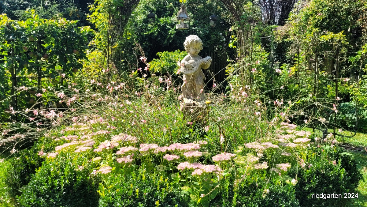 Den Mittelpunkt des neuen Gartens bildet ein zentrales kreisförmiges Beet, das durch wechselnde Bepflanzungen zu allen Jahreszeiten gefällt.